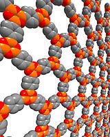 Using building blocks that make up ordinary plastics, but putting them together in a whole new way, University of Michigan researchers have created a class of lightweight, rigid polymers they predict will be useful for storing hydrogen fuel. The work is described in today's (Nov. 17) issue of the journal Science. The trick to making the new materials, called covalent organic frameworks (COFs), was coaxing them to assume predictable crystal structures---something that never had been done with rigid plastics. "Normally, rigid plastics are synthesized by rapid reactions that randomly cross-link polymers," said postdoctoral fellow Adrien Cote, who is first author on the Science paper. "Just as in anything you might do, if you do it really fast, it can get disorganized." For that reason, the exact internal structures of such materials are poorly understood, making it difficult to predict their properties. But Cote and colleagues tweaked reaction conditions to slow down the process, allowing the materials to crystallize in an organized fashion instead of assembling helter skelter. As a result, the researchers can use X-ray crystallography to determine the structure of each type of COF they create and, using that information, quickly assess its properties. "Once we know the structure and properties, our methodology allows us to go back and modify the COF, making it perform better or tailoring it for different applications," said Cote. Cote collaborated on the work with Omar Yaghi, who is the Robert W. Parry Collegiate Professor of Chemistry at U-M. Over the past 15 years, Yaghi has taken a similar approach to producing materials called metal-organic frameworks (MOFs). On the molecular level, MOFs are scaffolds made up of metal hubs linked together with struts of organic compounds. By carefully choosing and modifying the chemical components used as hubs and struts, Yaghi and his team have been able to define the angles at which they connect and design materials with the properties they want. Like MOFs, COFs can be made highly porous to increase their storage capacity. But unlike MOFs, COFs contain no metals. Instead, they're made up of light elements � hydrogen, boron, carbon, nitrogen and oxygen � that form strong links (covalent bonds) with one another. "Using light elements allows you to generate lightweight materials," said Cote. "That's very important for hydrogen fuel storage, because the lighter the material, the more economical it is to transport around in a vehicle. The strong covalent bonds also make COFs very robust materials." Although the main thrust of the current research is creating materials for gas storage in fuel cells, Cote, Yaghi and colleagues also are exploring variations of COFs that might be suitable for use in electronic devices or catalytic applications. "This is the first step to what we think is going to be a very large and useful class of materials," Cote said. Cote and Yaghi collaborated on the research with assistant professor of chemistry Adam Matzger and graduate students Annabelle Benin and Nathan Ockwig, all of U-M, and Michael O'Keeffe of Arizona State University. The work was funded by the National Science Foundation, the U.S. Department of Energy and the Natural Sciences and Engineering Research Council of Canada. Related Links Omar Yaghi Science magazine SinoDaily Search SinoDaily Subscribe To SinoDaily Express