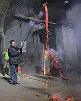 Beijing, Jan 30 (AFP) Jan 30, 2006 Fireworks explosions killed 36 people and injured hundreds more in China as traditional Lunar New Year celebrations led to much mayhem as well as joy across the nation, officials and state media said Monday. In the most serious accident, 36 people at a temple fair in the central province of Henan were killed on New Year's Day Sunday when a nearby store room full of fireworks exploded, Xinhua news agency said. The accident, in a mountainous area of Anyang city, injured up to 48 other people, it said, quoting sources with the local government. Sixteen were initially reported to have been killed but the death toll rose after another more bodies were discovered during clear up operations and some victims died of their injuries, the news agency said. In the capital Beijing, where a 12-year ban on Lunar New Year fireworks had just been lifted, the government reported 112 people were treated at hospital emergency rooms over the weekend for fireworks-related injuries. Seventeen people suffered serious eye injuries, the State Administration of Work Safety said in a statement. Another 26 were admitted to hospitals with various types of other wounds, it said. More than 60 people were treated at Beijing's Tongren Hospital, which is the city's number one medical facility for eye care, the Beijing News reported. "On New Year's Eve alone, we had more than 40 injuries and among them there were around a dozen people with serious injuries," the paper quoted hospital assistant director Tian Jian as saying. In China's southwestern Chongqing city, where the fireworks ban was also lifted after 12 years, firefighters rushed to extinguish nearly 200 fires caused by fireworks on New Year's Eve, the Xinhua news agency reported. "There were 191 fires caused by fireworks overnight on New Year's Eve ... a record for the city," Xinhua quoted a local fireworks official as saying. "Around 3,000 firefighters gave up the chance to spend the New Year with their families to remain on duty the whole time ... they have been under enormous pressure." However, Chongqing officials said there had been no reports of injuries. A ban on fireworks, which are traditionally believed to ward off evil spirits and ghosts trying to enter the new year, was put in place across 200 cities in China in 1994 due to safety and environmental pollution concerns. The ban was lifted last year for more than 100 cities after authorities said the industry had been cleaned up to ensure higher safety standards. The ban was lifted in Beijing and many other cities this year. In Beijing, a city of 15 million people, the sounds of huge explosions have for days thundered through the alleyways of traditional courtyard districts as well as the modern areas of new condominiums and office high-rises. The city's streets have been left littered with used fireworks, with the Beijing Environmental Protection Bureau reporting 458 tonnes of such waste collected on New Year's Day alone, according to the Beijing News Daily. However, amid the fireworks mayhem, state press reported China's 1.3 billion people were largely enjoying the festivities, with celebrations to continue throughout all of this week's worth of public holidays. Tens of thousands of people flocked to temples in Beijing -- once closed as symbols of feudal superstition by the Communist regime -- on Sunday and Monday.